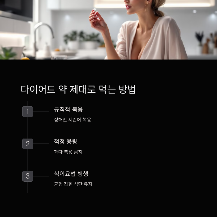💡 **다이어트 약을 먹는다고 해서 운동과 식단 조절을 하지 않으면 효과가 반감될 수 있어요!** 약을 먹는 것만으로는 **완벽한 다이어트가 아니라는 점, 꼭 기억하세요!**